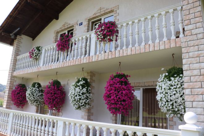 Gospođa Snježana Šaško iz Zlatara prošla je puno toga u životu, a vedrog duha joj ne nedostaje. Snježana je naime pozvala našu ekipu da posjeti njezin dom i poslika njezino balkonsko cvijeće, koje je, kako je rekla, ove godine izrazito uspjelo. Naglasila je da takvo cvijeće još nije kod nikog vidjela. – Riječ je o surfinijama koje sam ove godine prvi put posadila u tegle na nagovor svojih dviju kćeri i supruga. Ja sam često sadila pelargonije, a ove sam godine po prvi put posadila baš njih – rekla nam je Snježana i naglasila kako se i sama iznenadila kako su one uspjele. Njezine surfinije se nalaze na dijelu kuće koji je cijeli dan u hladu, a kako kaže, nije im nasmetalo niti jedno nevrijeme. Balkon krase one roze i bijele, a velike su oko jedan i pol metar.