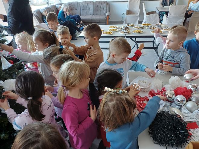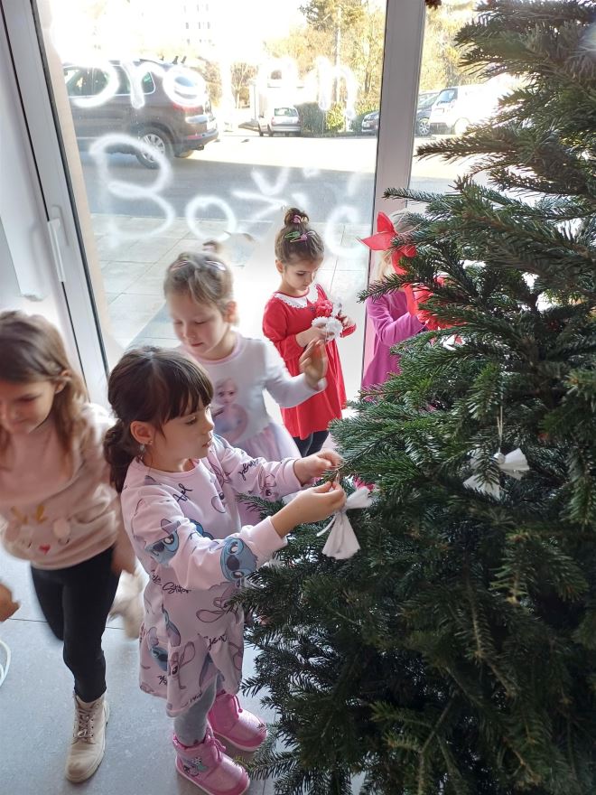 Mališani iz Dječjeg vrtića Zipkica, odgojna skupina Školjkice, s 'tetama' Karmelom i Ankicom posjetila je Dom za starije Leonardo. Tamo su okitili bor, pripremili za korisnike kratki i prigodni program, a neki su čak i zaplesali.