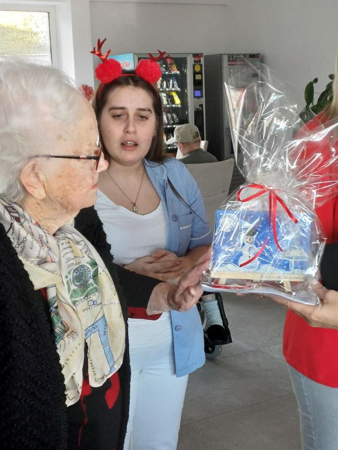 Korisnici i osoblje doma oduševili su se poklonom Školjkica te ih počastili slatkišima i grickalicama. Bilo je to predivno druženje na obostrano zadovoljstvo.