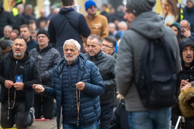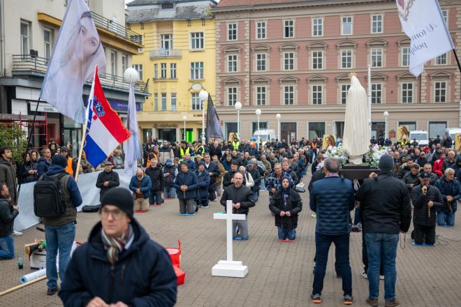 I ove su se subote na Trgu bana Jelačića u Zagrebu okupili molitelji s krunicama.