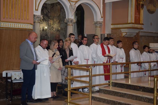 Obredima Velikog petka večeras je u Svetištu Majke Božje Bistričke u Mariji Bistrici nastavljeno Sveto vazmeno trodnevlje. Obred Službe muke Gospodnje predslavio je p. Željko Paša.