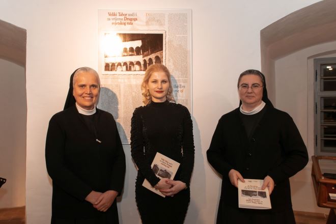 Na samom početku svečanosti Renata Dečman pozdravila je sve okupljene i predstavila je izložbu kojom se javnosti prezentira povijest dvorca, njegova namjena i korisnici od 1938. do 1945. godine. Objasnila je kako se radi o razdoblju kada su Velikim Taborom upravljale časne sestre Družbe Kćeri Milosrđa Trećeg reda sv. Franje iz Blata na Korčuli. U dvorac su se doselile u kolovozu 1938., uskoro nakon što ga država kupuje od dotadašnjeg vlasnika Tomislava Ivekovića (sina poznatog slikara Otona Ivekovića) i u njemu su živjele sve do studenoga 1945. godine. Nakon njihova dolaska Veliki Tabor počinju koristiti ferijalne kolonije, a časne su sestre skrbile o djeci koja su dolazila na jednomjesečni ili dvomjesečni boravak.