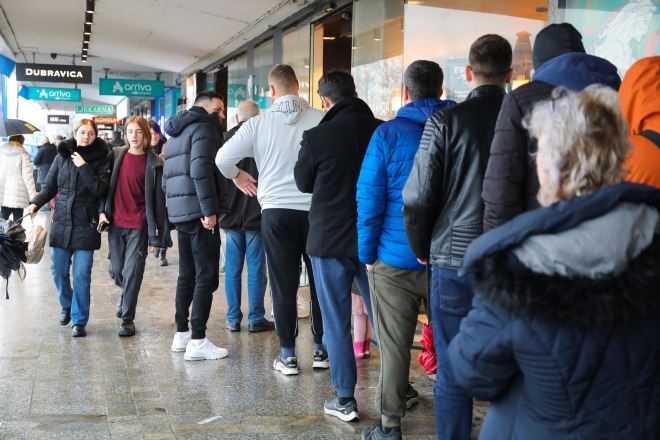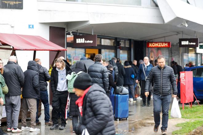 Kao da se nešto besplatno dijeli! Tako bi se mogle opisati gužve i redovi na jednom od rijetkih "punktova" u Zagrebu gdje se čak i danas, na blagdan Sveta tri kralja, mogu kupiti kruh i još pokoje namirnice. Riječ je o Autobusnom kolodvoru gdje je otvoren Konzum i to do 15 sati.