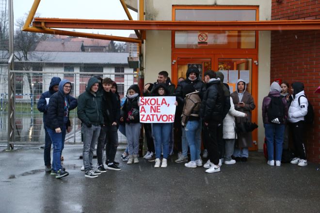 Učenici su još jučer najavili veliki prosvjed, pojašnjavajući da ih najviše smeta činjenica što se zaključavaju vrata škole, što iz nje ne mogu izlaziti tijekom tzv. malih odmora, već samo za vrijeme velikog odmora. - Može doći do prirodnih nepogoda poput potresa, požara, poplava… ili dojava o bombi, ako što je bila nedavno, i onda bi mi u pravilu trebali čekati da nam netko, tj. čistačica, koja radi svoj posao i nije cijelo vrijeme uz vrata, da nam ona otvori vrata – pojasnili su u najavi prosvjeda.