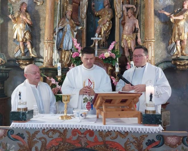U suslavlju sa preč. Stjepanom Pavokovićem i vlč. Mirkom Brlićem, misu u kapelici predslavio je preč. Domagoj Matošević, rektor Svetišta MBB-e.