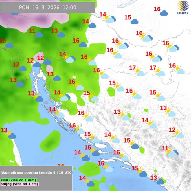 Prema posljednjim kartama DHMZ-a, u dijelu zemlje bi sredinom idućeg tjedna moglo biti i snijega. To je za N1 navela i meteorologinja Tea Blažević: "Početkom novog tjedna jače naoblačenje. Zapuhat će vjetar sjevernog smjera, osjetno će zahladnjeti, u gorju će biti snijega. Kišu i pljuskove, moguće i obilnije, ponegdje može pratiti i grmljavina."