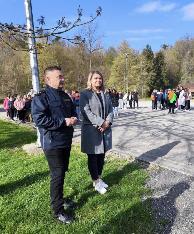 U ponedjeljak, 7. travnja, na objektu Osnovne škole Josipa Broza u Kumrovcu održana je vježba evakuacije i gašenja požara.