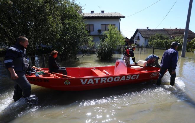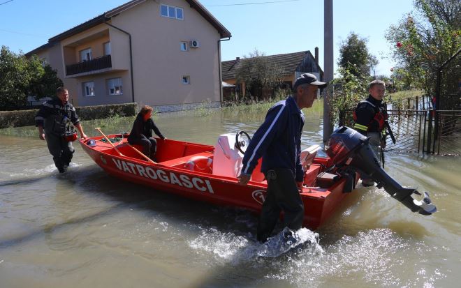 Kako je zabilježila fotoreporterka, mještanima poplavljenih Brodaraca u pomoć su stigli i vatrogasci s čamcem.