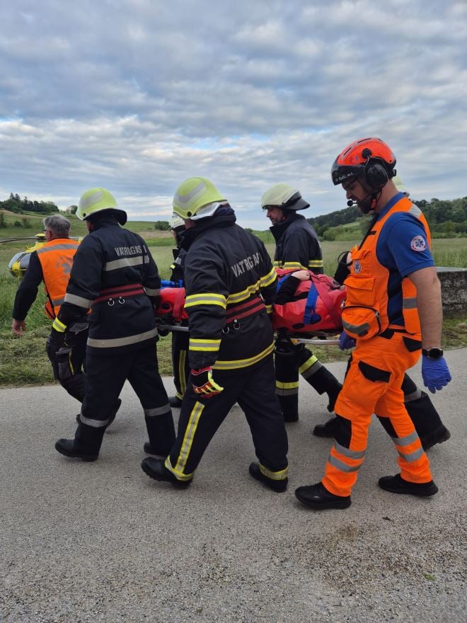 Nakon zbrinjavanja unesrećenog od strane helikopterske HMP, vatrogasci su unesrećenog pomogli unijeti u helikopter. Na intervenciju su stigli i vatrogasci DVD Novi Marof, no na sreću nije bilo potrebe za njihovim djelovanjem.