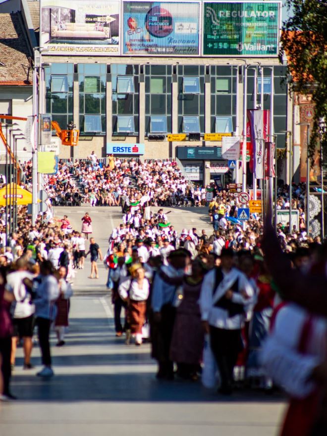 Mimohod je završio tradicionalnim šokačkim kolom svih sudionika na stadionu - nezaboravan trenutak zajedništva! Večernji nastup na glavnoj pozornici bio je kruna gostovanja. Plesači i tamburaši maestralno su izveli pjesme Široka je kopriva i Zagorje oduševivši sve okupljene. Upravo tu ljubav prema pravim i istinskim vrijednostima, prema domu i obitelji, folkloru i tradiciji, svi iz Svetog Križa Začretja čuvaju kao najveće blago i prenose potomcima koji će jednoga dana, u ovom novom svijetu, živjeti i opstajati zahvaljujući snažnim temeljima na kojima su odrastali.