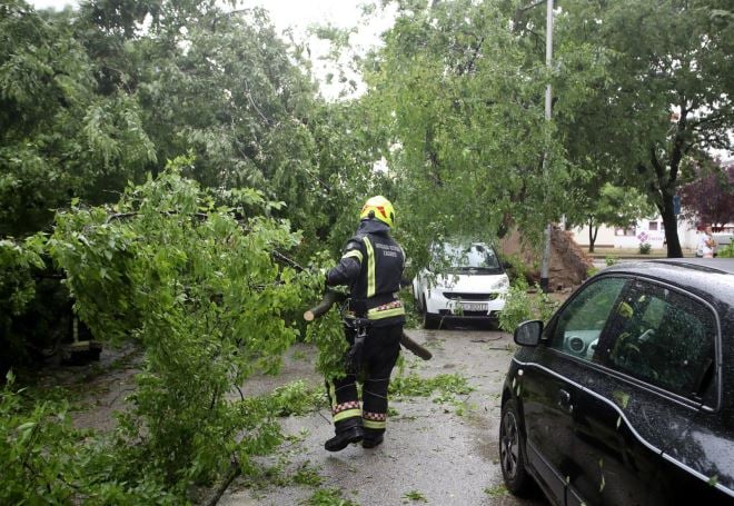 Kao što je najavljeno, u Hrvatsku je stigla velika promjena vremena. Nevrijeme je oko 10 sati zahvatilo Zagreb. Najveća šteta je nastala na području Novog Zagreba, gdje je vjetar trgao rolete, oštetio krov na školi i rušio stabla na automobile, piše Index.
