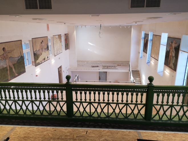 – U nekim spremištima i garderobama pločice su ostale stare, prema zahtjevima konzervatora. Obnovljene su i vrijedne freske. Prema prijašnjoj projektnoj dokumentaciji, na koju je kOnzervatorski odjel dao suglasnot, na fasadi zgrade bila je rasvjeta, no sada se odlukom konzervatora morala maknuti. Čekali smo mjesec i nešto dana i odluku o boji vanjske fasade, a ima i novih zahtjeva oko elemenata na samoj fasadi. U unutrašnjosti se još treba montirati sigurnosna ograda na dio koji je pomičan, a namijenjen orkestru ispred same bine.