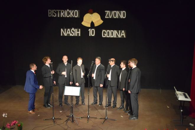 Zbor Udruge umirovljenika Marija Bistrica ''Bistričko zvono'' ove godine slavi deset godina postojanja. Tom prigodom organiziran je koncert, koji je održan večeras u Domu kulture u Mariji Bistrici. Na proslavu bistrički su umirovljenici pozvali i goste, Klapu ''Bistrica'' i Zbor umirovljenika Zlatar Bistrica, a svi skupa su izveli su program, koji je publika pozdravila velikim pljeskom.