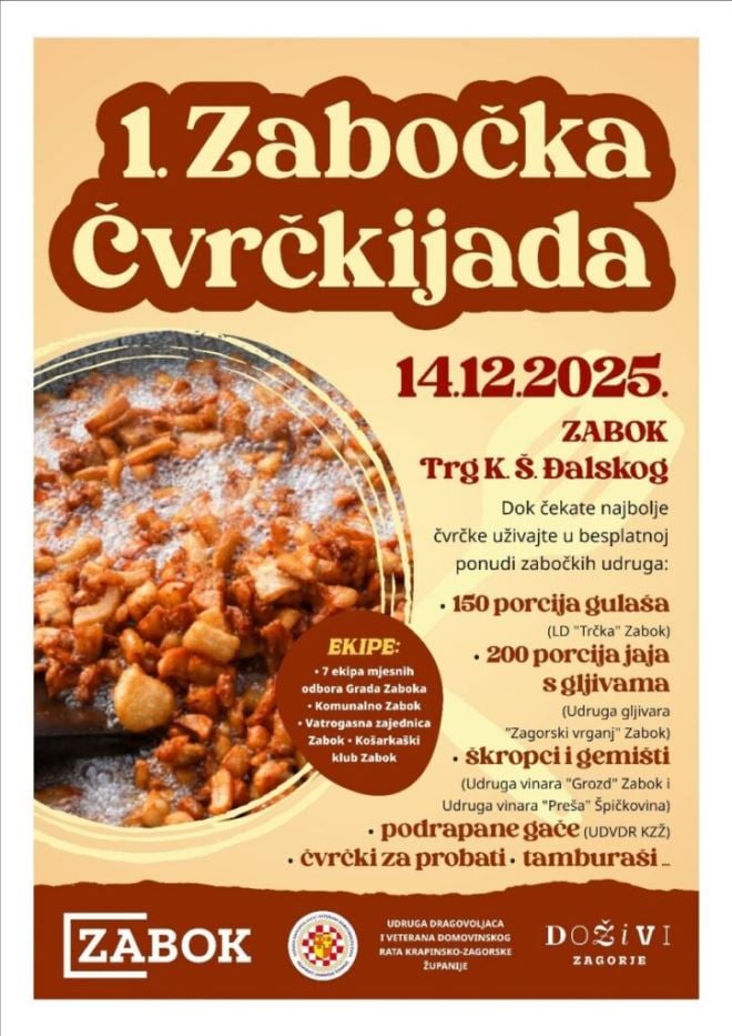 Kako su najavili iz Grada Zaboka, tijekom pripreme čvaraka, posjetitelji će moći uživati u bogatoj ponudi domaćih jela koja se pripremaju posebno za ovu prigodu.
