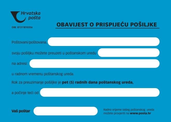 Obavijest je jasna i navodi se točan način i mjesto isporuke pošiljke.