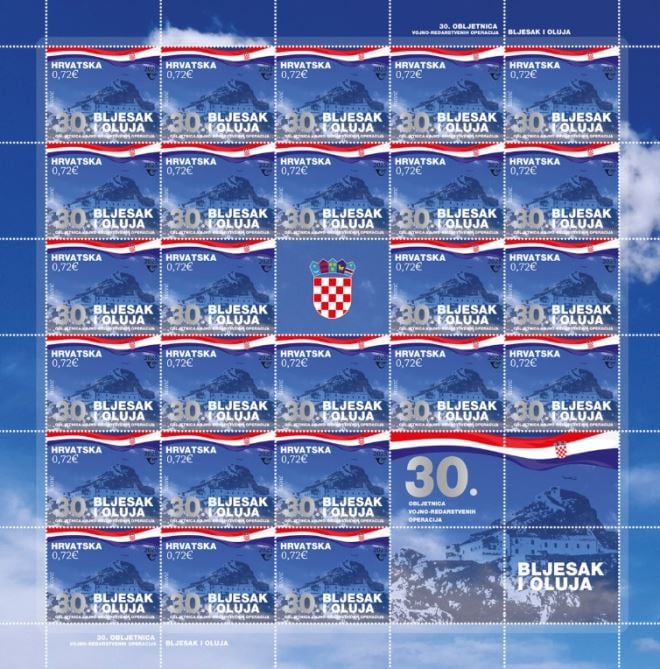 U čast 30. obljetnice vojno-redarstvenih operacija (VRO) “Bljesak” i “Oluja”, Hrvatska pošta stavit će u optjecaj 1. kolovoza novu prigodnu poštansku marku s motivom kninske tvrđave na kojoj vijori hrvatska zastava, priopćeno je u srijedu iz Hrvatske pošte.