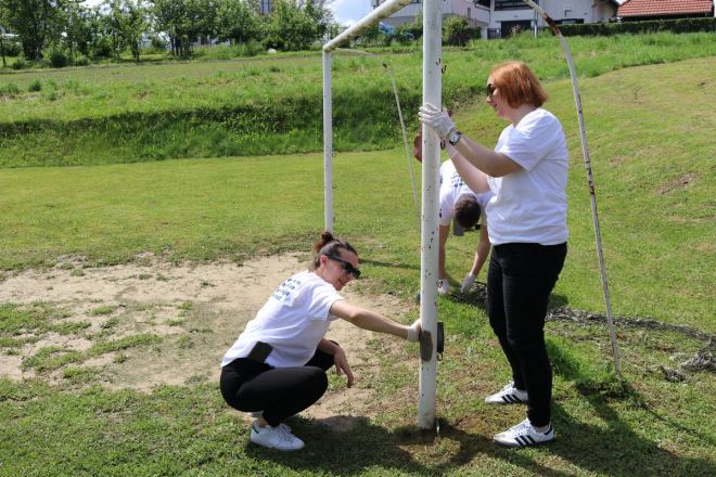 [HRVATSKA VOLONTIRA] Šezdesetak volontera očistilo i obojalo ogradu na igralištu i posadilo cvijeće u vrtu Područne škole Krušljevo Selo