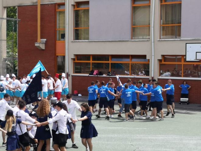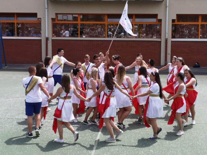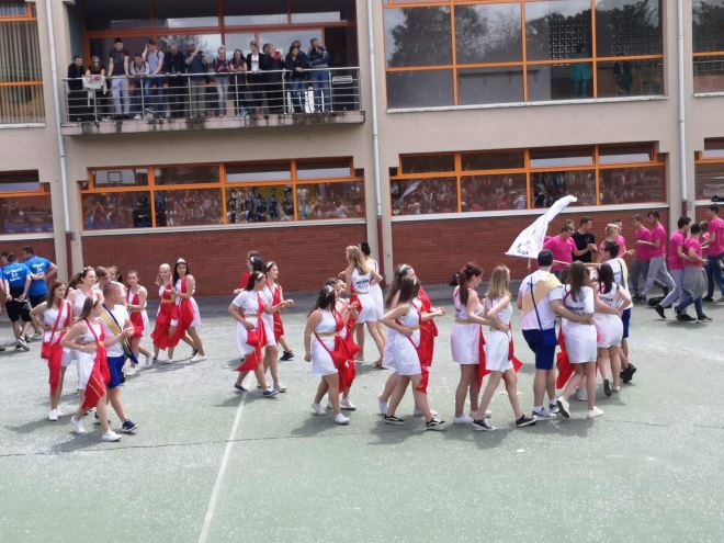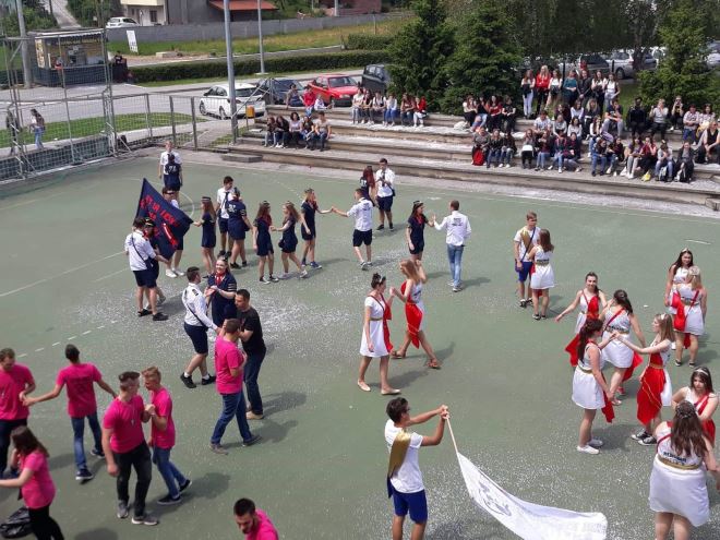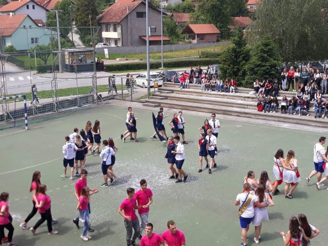 Učenici Srednje škole Bedekovčina, njih oko 150 iz sedam razreda danas su tradicionalno na igralištu zaplesali Salonsko kolo.