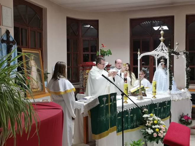 Pjevanje pod Misom i euharistijsko Klanjanje animirao je Plamen Srca, zbor mladih župe Tuhelj, razmišljajući o temi „Tko je moj bližnji?“.