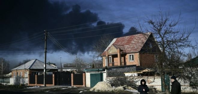 U glavnom ukrajinskom gradu Kijevu vlada prometna gužva jer stanovnici automobilima odlaze u strahu od napada. Na glavnom ukrajinskom Trgu neovisnosti ili Majdanu puštaju se budnice i nacionalna himna, a građani se dobrovoljno prijavljuju u vojsku.
