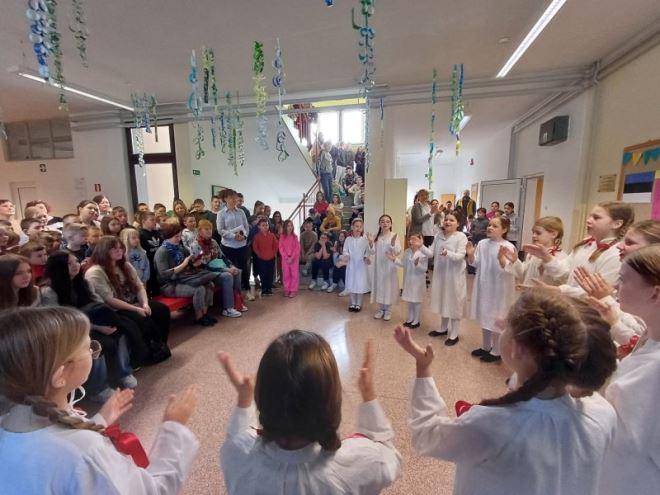 Klanječki osnovnoškolci i njihovi učitelji za svoje goste iz Estonije pripremili su bogat i sadržajan program. U ponedjeljak im je dobrodošlicu zaželio školski zbor i folklor. Estonski učenici i učitelji sudjelovali su na nastavi engleskog jezika, matematike u 7. i 8. razredu, uspješno su naučili pjevati i plesati „Išla žena u gosti“ i upoznali tradicionalnu zagorsku nošnju. Tijekom učeničke pripreme i objave vijesti za klanječku i estonsku školsku web stranicu i izrade prezentacije u Sway-u, ravnatelj škole Igor Papić je kolegici, ravnateljici estonske škole Aulle Kink i prof. biologije Ulle Valgi, predstavio godišnji plan i školski kurikulum te hrvatski odgojno-obrazovni sustav. Na kraju radnog dana ravnateljica Kink predstavila je svoju školu klanječkim učiteljima.