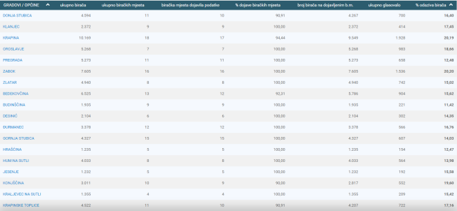 U III. izbornoj jedinici izlaznost do 11:30 je bila 17,02%. U Krapinsko - zagorskoj županiji izlaznost je bila 16,59%, u nastavku pogledajte kakva je izlaznost po gradovima i općinama u KZŽ.
