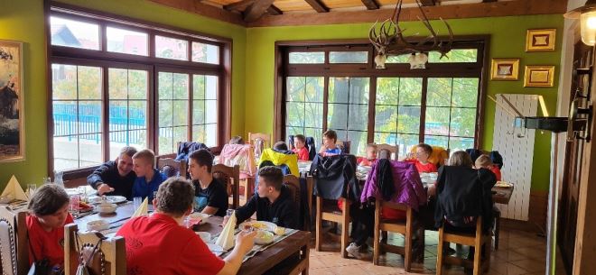 U samom restoranu djeca, mladež, rukovodstvo DVD-a i roditelji imali su zajednički ručak gdje su se odmorili, najeli i krenuli prema daljnjem razgledavanju. Špilja Vrelo bila je sljedeća ruta do koje su pješačili uz ljepote jezera Bajer dugih 7 km. Posjet špilji djeci je bio zanimljiv i prohladan pošto je temperatura špilje iznosila samo 5 stupnjeva.