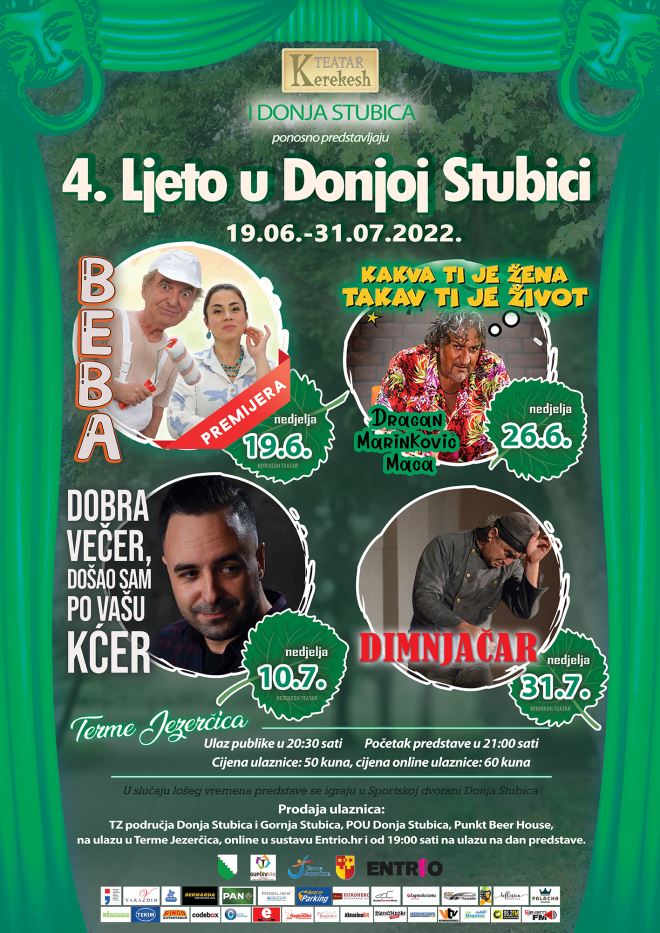 Sve predstave počinju u 21 sat, a u slučaju lošeg vremena održat će se u Sportskoj dvorani Donja Stubica.