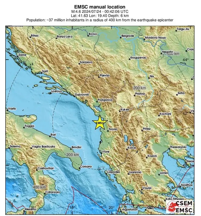 Potres jačine 4,6 stupnjeva po Richteru dogodio se 48 kilometara sjeverozapadno od Tirane u 2:42 sati po lokalnom vremenu. Potres su, osim u Albaniji osjetili i u Crnoj Gori, BiH i Hrvatskoj.