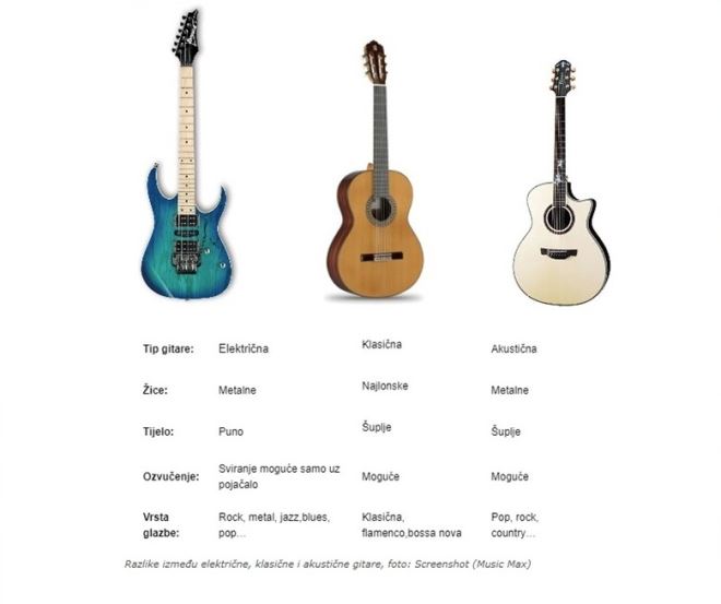 Ovdje ćemo na jednostavan način predstaviti razlike između 3 osnovna tipa gitara (klasična, akustična i električna). Zašto je to tako važno? Zato što većina gitarista svira na najmanje 2 tipa gitare.Ako pitaš nekog od poznatih gitarista koji često svrate u našu trgovinu, većina njih kod kuće imaju sva tri tipa gitare.