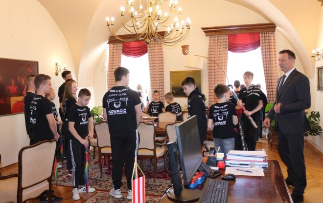 Kadetski prvaci Hrvatske u savateu na prijemu kod gradonačelnika Varaždina