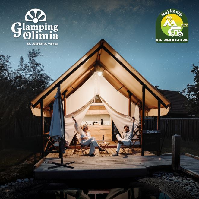 Glamping se sve više traži, a u oazi mira i prirode slovenskih Terma Olimia nalazi se Glamping Olimia Adria Village s 20 suvremeno opremljenih luksuznih šatora, za dvije ili četiri osobe, koji gostima omogućavaju dodir s prirodom i premium odmor s dozom avanturističkog duha.
