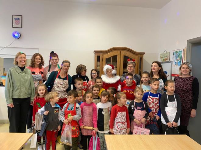 Na početku druženja pozdravila ih je općinska načelnica Vesna Mikulec, ravnateljica Osnovne škole Jasna Kokot Pelko i v.d. ravnateljica Dječjeg vrtića ‘Zlatni dani’ Beatrica Kunić. Uz veselo druženje uz sokove i čaj te mirisne i ukusne kolačiće djeca su mijesila tijesto te izrezivala i pekla kolačiće.