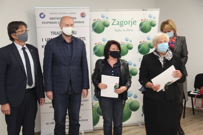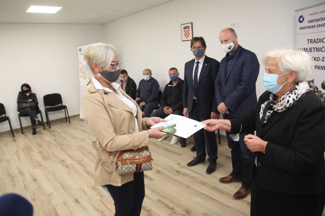 Ugovore su korisnicima uručili župan Željko Kolar, predsjednik Obrtničke komore Darko Varga i predsjednica Ceha tradicijskih i umjetničkih obrta Vlasta Hubicki.