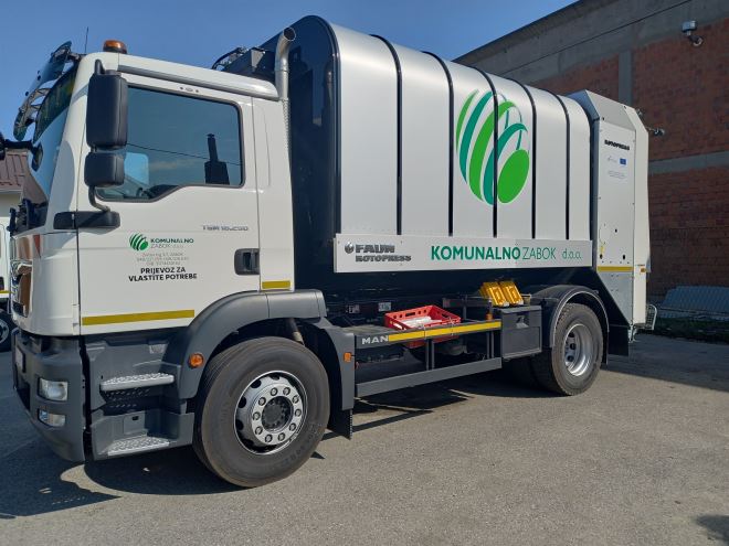Marka vozila: FAUN ROTOPRESS 16m³ namijenjeno je za odvojeno prikupljanje korisnog otpada (papir, plastika, staklo i dr.) na području grada Zabok i općine Bedekovčina.