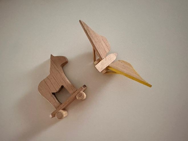 – Htio sam napraviti maketu od letvica, i tako smo se odjednom ulovili u sve to. Prvo smo 2012. godine izrađivali igračke za Susrete za Rudija. Imali smo 50-ak aviona, par leptira i mačeva, sve moderne motive, ali ništa tradicijsko. Otišli smo na sajam i prodali samo četiri tradicijske igračke, a ni jedan avion. Tada smo shvatili da je tradicija tradicija. Sve avione smo prebrusili i prefarbali - objašnjava Lovro.