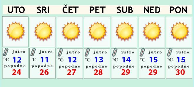 Prvi dan novog tjedna vrlo vjerojatno će nam i dalje biti suh i pretežno sunčan uz maksimalnu temperaturu oko 30 Celzijevih stupnjeva. Vinogradari i poljoprivrednici će sigurno biti zadovoljni ovakvim prognozama.