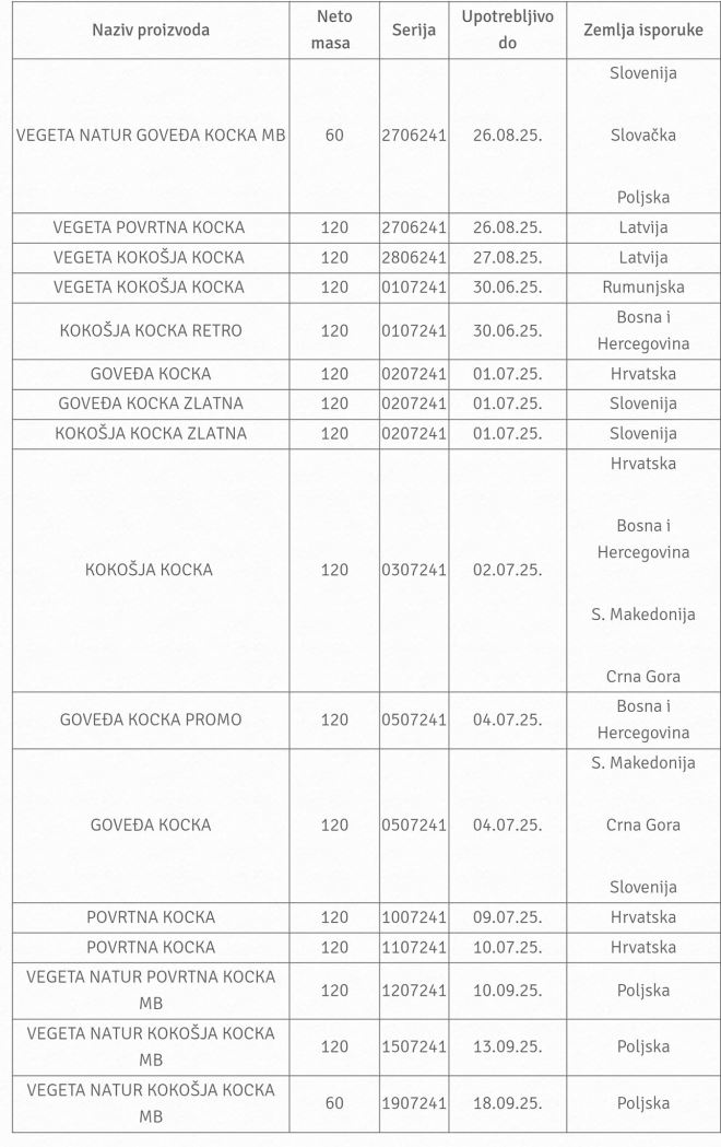 Podravka obavještava kupce kako se iz prodaje povlače kokošje, goveđe i povrtne kocke težine od 60-120 grama.