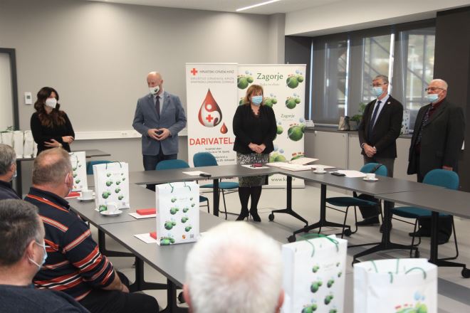 Župan Kolar darivateljima je čestitao njihov dan te je istaknuo da darivati svoju krv po sto i više puta mogu samo ljudi koji imaju ogromno srce i humanost u sebi. Danas su ovdje s nama gorostasi. Velikani, ljudi koji su svojim darivanjem krvi spasili svaki preko 300 života. S time se mali broj ljudi u Hrvatskoj, Europi i Svijetu može podičiti i ponositi, a mi na području Krapinsko – zagorske županije imamo 175 takvih do sada. I prošle godine, koja je zbog Covida-19 za sve nas bila posebno zahtjevna, a najzahtjevnija za zdravstveni sektor, za bolnice, domove zdravlja, hitnu, zavode koje su radili na pružanju pomoći oboljelima od Covida-19, mislim da je jedan od najzahtjevnijih poslova bio kako u tim uvjetima osigurati dostatnost krvi za sve stanovnike na području Republike Hrvatske. I naša društva Crvenog križa su zahvaljujući ovim ljudima uspjeli. Naša županija je uvijek među prve tri u prosjeku u Republici Hrvatskoj po skupljenim dozama kroz darivanje krvi, što je izuzetan rezultat, što samo pokazuje koliko su kod nas u Zagorju ljudi velikog i širokog srca i koliko su spremni davati sebe da bi pomogli drugima – rekao je Kolar.