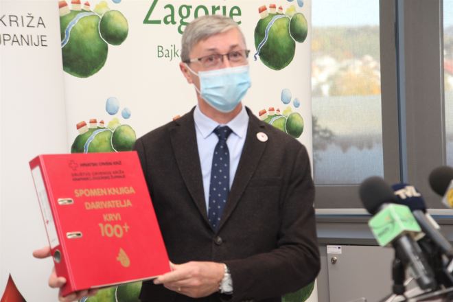 Ravnatelj Šimunović zahvalio je kako darivateljima, tako i Krapinsko – zagorskoj županiji na čelu sa županom Kolarom, koja ih, kako je istaknuo, financijski prati u svim njihovim aktivnostima. – Evo, ovdje držim u ruci jednu spomen knjigu darivatelja krvi 100+. Rijetko koje županijsko društvo u Hrvatskoj ima takvu knjigu, ali i rijetko koje ima toliki broj darivateljica i darivatelja krvi 75+ i 100+. Dakle, mi ih imamo do sada 175. U ovoj godini 19 darivateljica i darivatelja dosegnulo je brojku od 100 darivanja krvi – rekao je Šimunović te se prisjetio jednog važnog povijesnog podatka. – Na današnji dan, 25. listopada 1953. godine, u Željezari Sisak, održana je prva organizirana akcija dobrovoljnog darivanja krvi, a već iste te godine akcije su održane i u Krapini, Humu na Sutli, Zlataru i Bedekovčini, na kojima je prikupljeno 280 boca krvi – prisjetio se Šimunović te potom naveo odlične rezultate zagorskih društava tijekom protekle, 2020. godine.