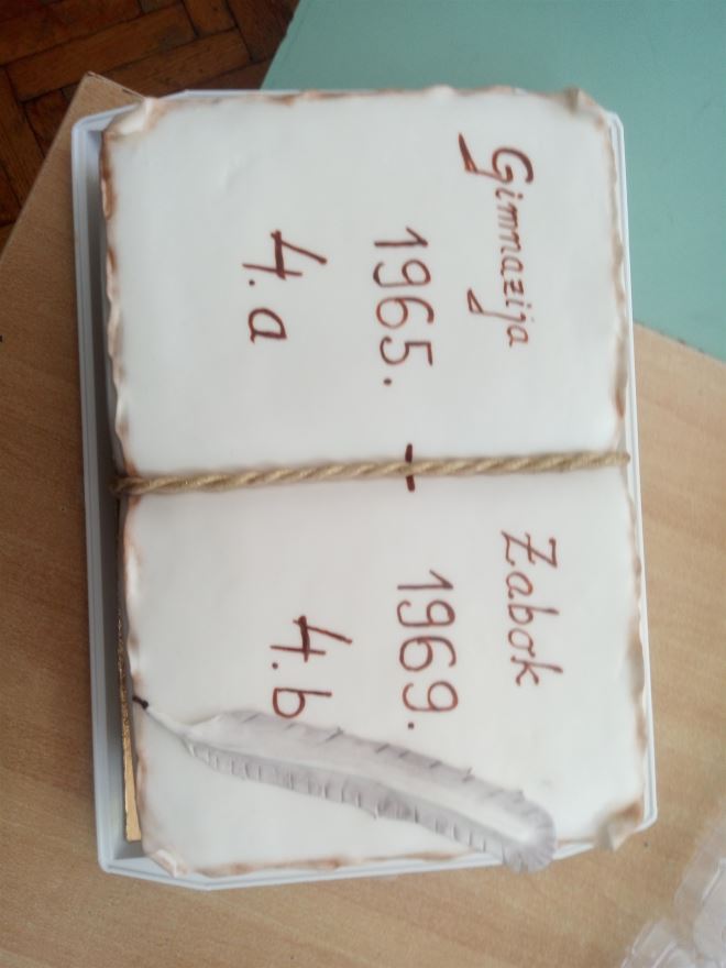 Mnogi su na ovo druženje donijeli slike iz gimnazijskih dana, a na proslavu su došli i razrednik A razreda Zvonko Perović i B razreda Fanika Perica. Uz prigodne poklone profesorima ugodno iznenađenje su bile prigodne majice „50 godina mature“ koje je svim slavljenicima poklonio Josip Perinić te lijepa i ukusna torta uz natpis „Gimnazija Zabok“ koju je ispekla Nevenka Uvodić (Dijanić).