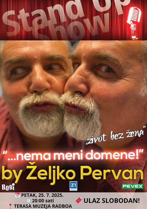 U petak, 25. srpnja u 20:00 sati, na terasi Muzeja Radboa vas očekuje večer vrhunskog humora uz legendarnog Željka Pervana! Pripremite se za dozu smijeha i britke satire u jedinstvenom ambijentu pod zvijezdama.
