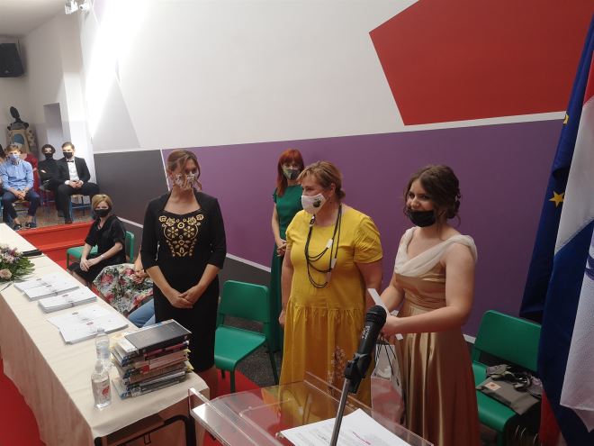 Zamjenica župana Jasna Petek poručila je Luciji i svim učenicima da budu ponosni na srednjoškolsko obrazovane koje su završili jer je ovo škola s jednim većim autoritetom ne samo u našoj županiji već i u cijeloj Hrvatskoj