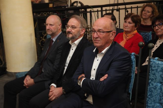 Župan Željko Kolar uputio je čestitke laureatu i izrazio zadivljenost njegovom biografijom. - Slušajući sve nagrade koje su do sada osbojili i čitajući biografiju ostao sam zaprepašten što ste sve u životu radili i kada ste stigli ovo napisati. 18 romana, toliko dječje književnosti, biti u Bratislavi, Pragu, Zagrebu, Londonu, Washingtonu, stvarno impresivno, biti scenarist za Profesora Baltazara - nevjerojatno kakva karijera i samo vam je stvarno Ksaver Šandor Gjlaski falio u vašim vitrinama – rekao je Kolar te poklonio u ime Županije Ludwigu Baueru njegov portret.