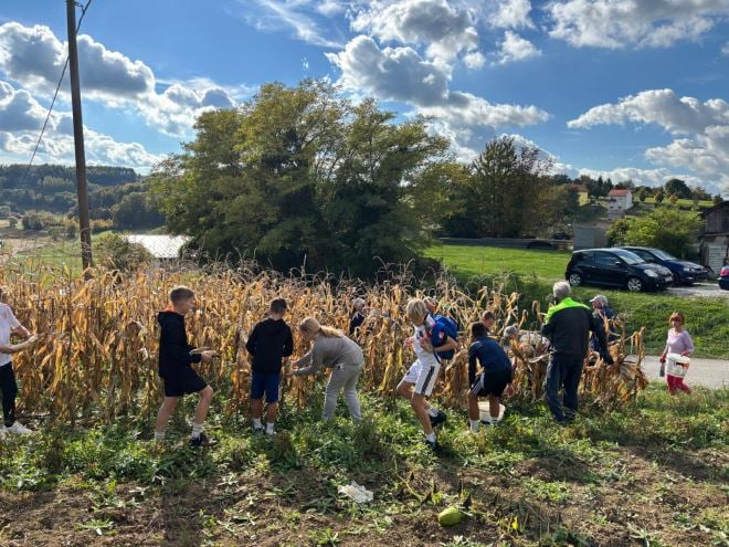 Umirovljenicima su se pridružili i učenici Osnovne škole Side Košutić Radoboj u pratnji učiteljice Vesne Horvat, koji su s velikim zanimanjem promatrali i sudjelovali u trganju i lupitvi kukuruza. Događanje je obogatila i glazba – za veselu atmosferu pobrinuo se dvojac Janke i Marke, a sve je završilo zajedničkom zakuskom i ugodnim druženjem generacija.