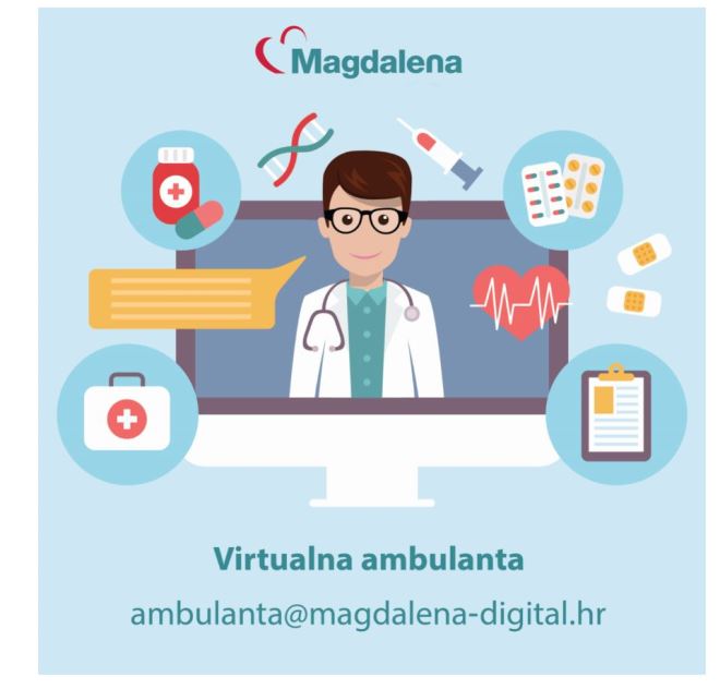 Od 16. travnja u klinici Magdalena otvorena je još jedna telemedicinska mogućnost, a nastoji još više približiti liječnike svojim bolesnicima. Radi se o virtualnoj ambulanti za koju je otvorena posebna adresa elektroničke pošte [email protected]. Pacijenti se pozivaju da na navedenu adresu pošalju relevantne medicinske podatke, simptome koje imaju, povijest bolesti te osobne podatke. Potom liječnik specijalist povratno kontaktira bolesnika u određenom terminu. Liječnik na kraju daje svoju preporuku za promjenu terapije i daljnje dijagnostičke pretrage. Tako je bolesnicima omogućen kontakt sa svojim liječnikom, a cijeli proces veoma sliči pravom ambulantom pregledu. Naravno, osim pacijenata koji su se već liječili u Magdaleni, u virtualnu ambulantu mogu se javiti svi pacijenti koji imaju srčane tegobe ili im je već ranije preporučen kardiolog. Prvog je dana u virtualnoj ambulanti konzultirano ukupno 8 bolesnika, a „led je probio“ dr. Alan Jelić.