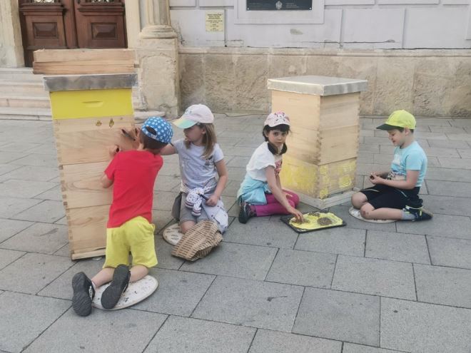 Mališani iz vrtića oslikavali košnice na Korzu
