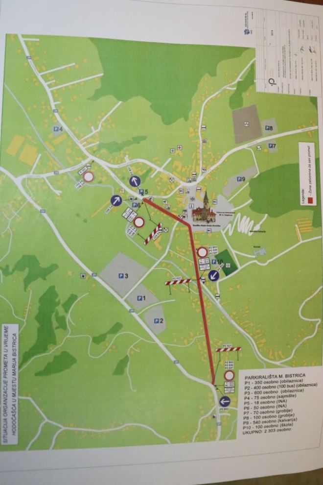 Marija Bistrica trenutno ima dva velika parkirališta – na obilaznici te kod Svetišta, odnosno crkve na otvorenom, ali i jedno manje, kod benzinske. Parkiranje na tim parliralištima regulira se i postavljenim semaforom na raskrižju kod Konzuma, gdje se u sam centar uključuju automobili iz više smjerova dolazaka. – Na ulazu u Svetište je uvijek gužva, pa smo postavilii semafor. Kad ide posebna regulacija prometa i prometna mladež ragulira promet na križanju, pomoću semafora procjenju na kojim je parkiralištima slobodno. Primjerice, ako je veliki priljev vozila iz Zagreba, koji parkiraju uz obilaznicu, na semaforu se odmah križa taj smjer i obilježava kao pun, tako da i putnicima bude jasnije zbog čega ih prometnici usmjeravaju u drugom smjeru – pojasnio je načelnik Josip Milički.