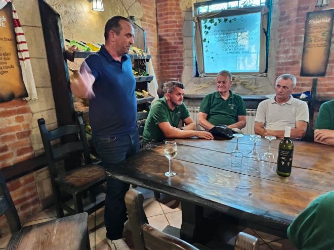 Večer svetokriških vinara završila je, kako to i priliči prigodi, druženjem uz zajedničku vinarsku večeru za koju su bili zaslužni Robert Sirovec i Franjo Cvetko, a onda i pokoštavanjem vina, naravno i ponajprije, onih visokonagrađenih.
