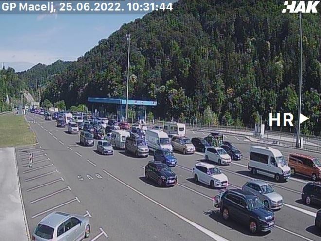 Kako je vidljivo i sa snimaka kamera, gužva i kolone također su i na Graničnom prijelazu Macelj, na ulasku u Republiku Hrvatsku.